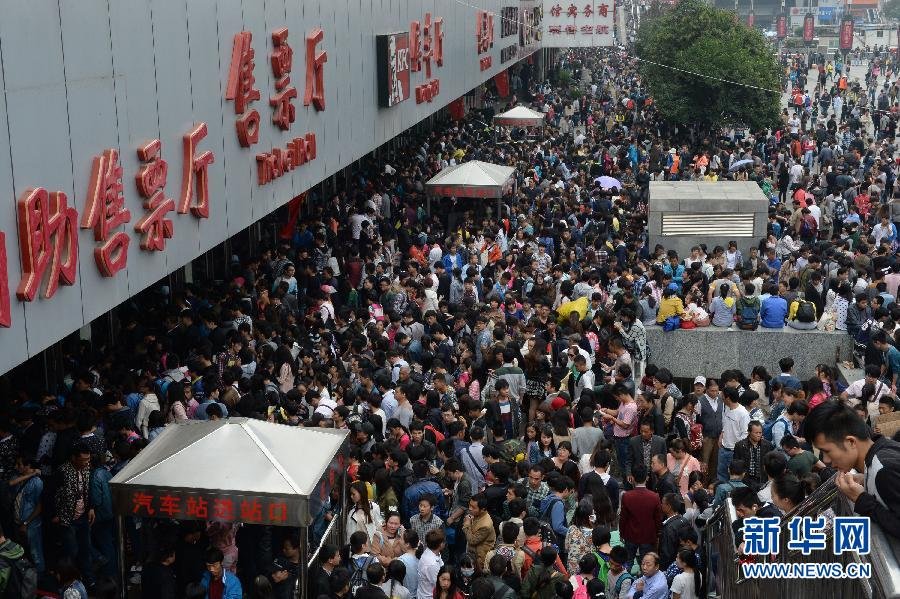 10月1日,乘客在郑州长途客运中心站排起长队等待进站。当日是国庆长假第一天,人们纷纷探亲访友或出游,全国多地出现出行高峰。 新华社记者赵鹏摄