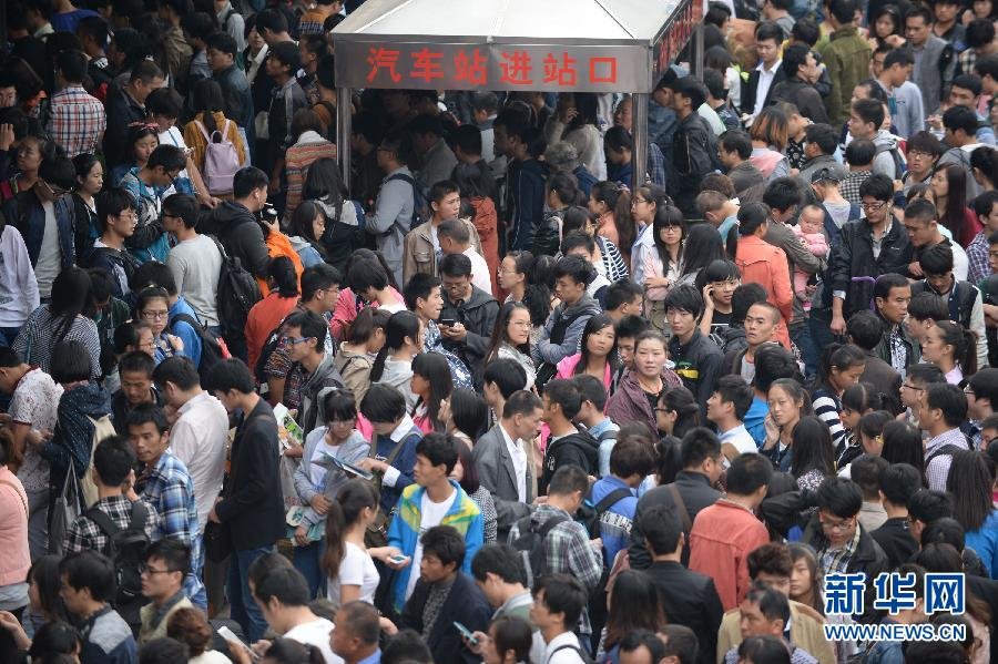 10月1日,乘客在郑州长途客运中心站排起长队等待进站。当日是国庆长假第一天,人们纷纷探亲访友或出游,全国多地出现出行高峰。 新华社记者赵鹏摄
