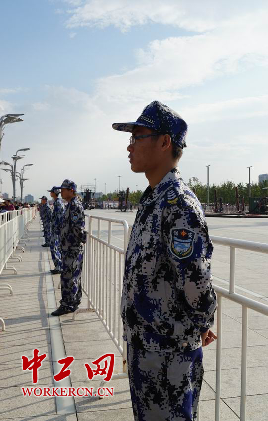 十一长假,有的人外出旅游度假,有的人选择在家休息;有的人抓紧时机“充电”,有的人回家探亲……然而却有这样一群人,他们选择坚守在工作第一线——他们是最美的劳动者。图为在奥林匹克公园执勤的安保人员。   中工网记者 耿瑜 摄