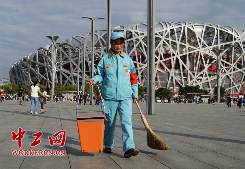 十一长假,有的人外出旅游度假,有的人选择在家休息;有的人抓紧时机“充电”,有的人回家探亲……然而却有这样一群人,他们选择坚守在工作第一线——他们是最美的劳动者。图为值守在奥林匹克公园的清洁工师傅。 中工网记者 耿瑜 摄