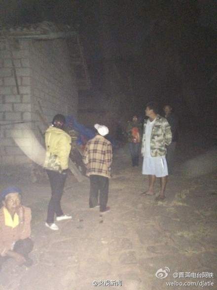 据中国地震台网正式测定:10月7日21时49分在云南省普洱市景谷傣族彝族自治县(北纬23.4度,东经100.5度)发生6.6级地震,震源深度5千米。图为景谷县益智乡益香村,村民已经撤户外,土坯房有拉裂,瓦片掉落。