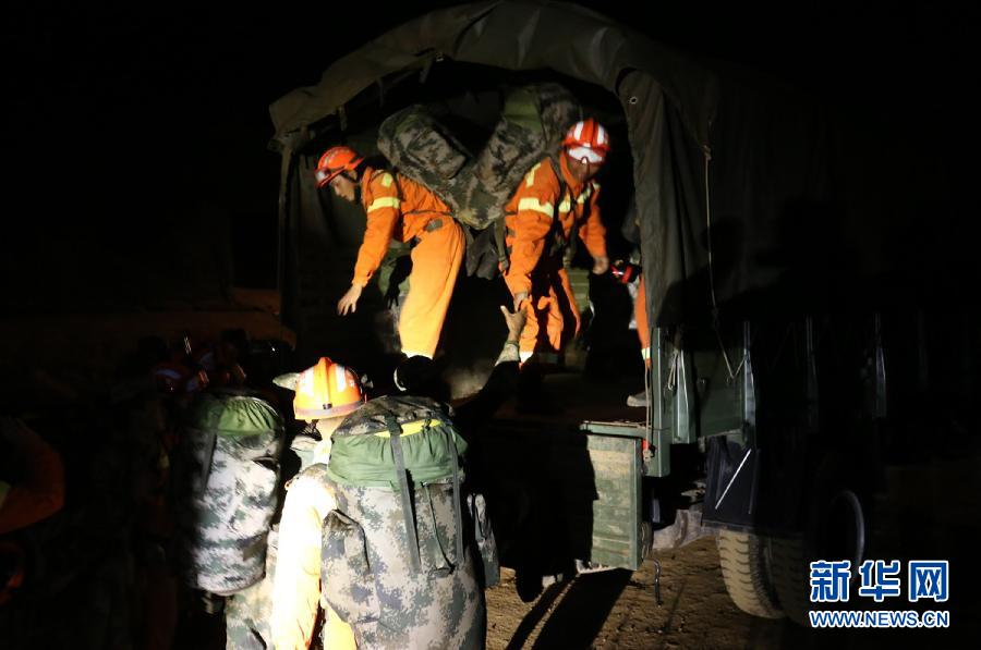 10月7日,救援队成员集结准备出发。 10月7日,云南省普洱市景谷傣族彝族自治县发生6.6级地震后,由成都军区第14集团军某工兵团组建的一支救援队于22点59分迅速出动,携带救援器材赶赴灾区。新华社发(孟磊磊摄)