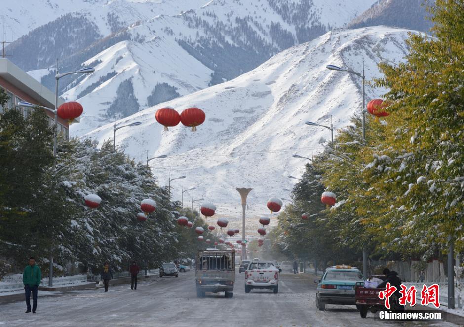 10月10日,新疆哈密地区巴里坤哈萨克自治县经历降雪降温天气,冰雪覆盖了道路和原野给当地交通出行和牧民野外放牧造成困难。张建刚 摄