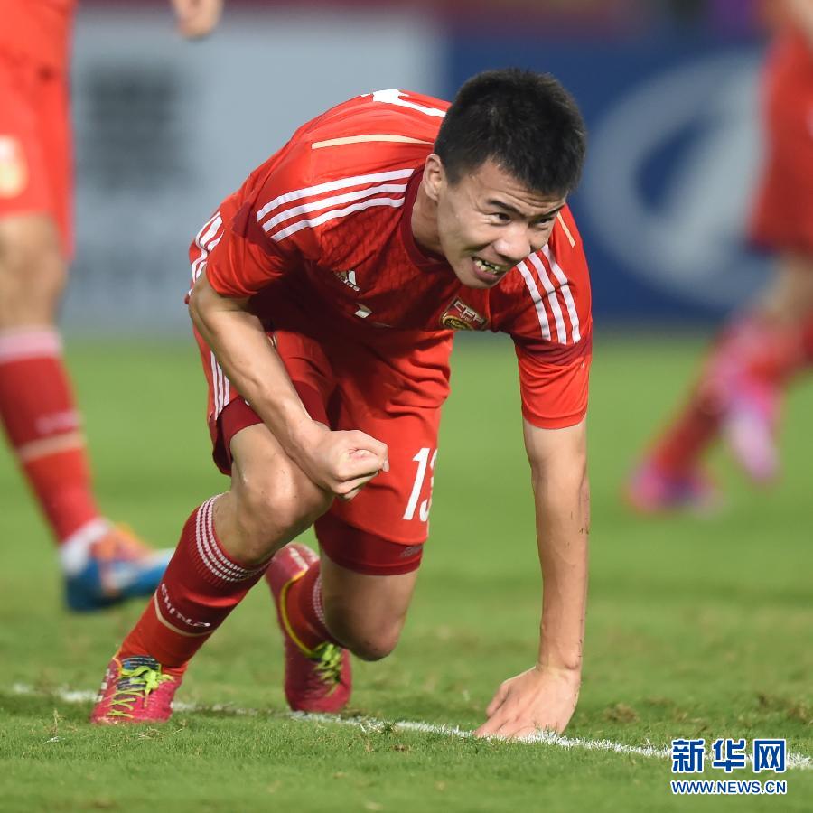 10月10日,中国队球员孙可在比赛中庆祝进球。当日,在武汉体育中心体育场举行的国际足球友谊赛中,中国国家队以3比0战胜泰国国家队。新华社记者郭勇摄