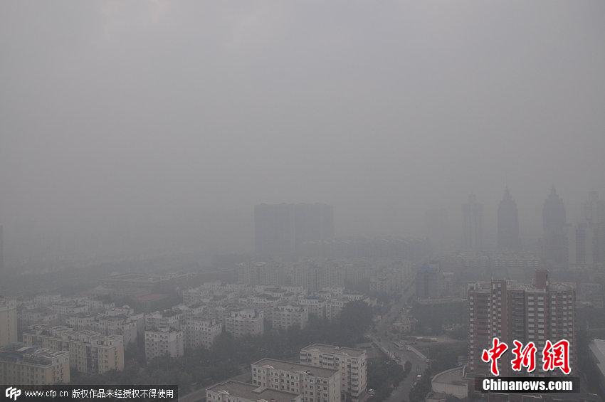 10月10日,郑州受雾霾天气影响能见度低,原来正常天气中清晰可见的中原福塔和市最高建筑“玉米棒”不见踪影。据中国气象网观测,郑州属于“重度污染”污染指数为202。据媒体报道称,这些雾霾来源于农村的“秸秆燃烧”。 图片来源:CFP视觉中国