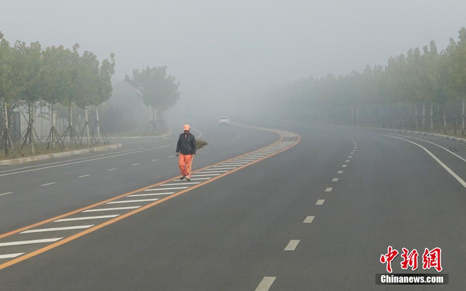 10月10日早晨,辽宁省大连市金州新区金石滩街道大雾弥漫。当日,辽宁省大连地区及周边海域出现浓雾,能见度局部小于50米。大连市气象台于5:00发布入秋以来首个大雾红色预警信号。 中新社发 刘德斌 摄 图片来源:CNSPHOTO