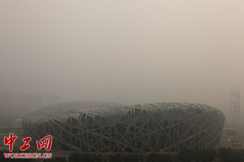 根据天气预报,一股较强冷空气正在西向东快速推进。预计从11日夜间开始,冷空气将抵达华北、黄淮等地,逐渐“驱散”雾霾。图为10月11日奥林匹克公园遭遇雾霾。 中工网记者 李雪峰 摄