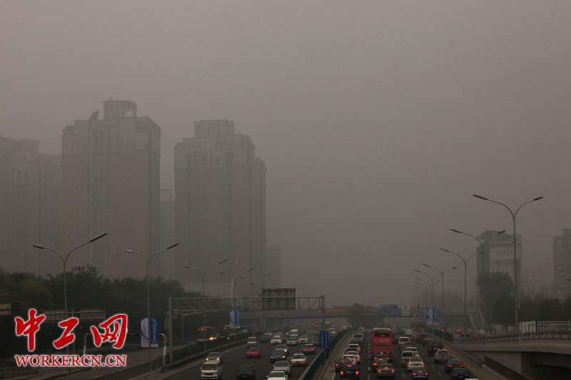 根据天气预报,一股较强冷空气正在西向东快速推进。预计从11日夜间开始,冷空气将抵达华北、黄淮等地,逐渐“驱散”雾霾。图为10月11日奥林匹克公园遭遇雾霾。  中工网记者 李雪峰 摄