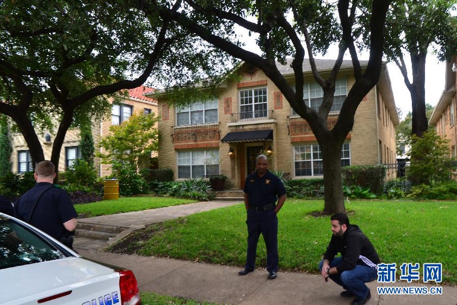 10月12日,在美国得克萨斯州达拉斯, 警方在患者所住公寓楼前警戒。美国卫生官员12日说,与美国本土发现的首名埃博拉患者有过接触的一名女护士,其埃博拉病毒初步检测结果为阳性,而染病原因可能是她“违反(护理)程序”。美国疾病控制和预防中心主任托马斯·弗里登当天在电话记者会上说,这名患者是得克萨斯州达拉斯圣公会医院的一名医务人员,在美国本土第一个埃博拉病例、利比里亚人邓肯入院治疗后,与其在“多个场合”有过“广泛接触”。新华社发(许迅摄)