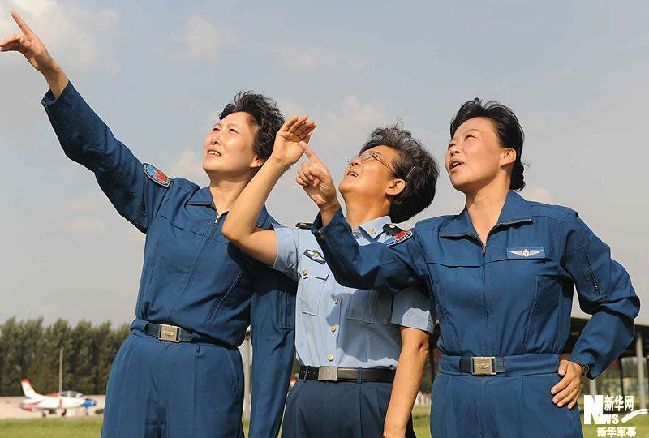 国庆60周年阅兵前夕,第一位女飞行员将军岳喜翠,第一位女飞行师长程晓健,战胜癌症、重返蓝天的某飞行师副师长刘文力专程到阅兵村为她们鼓劲打气。