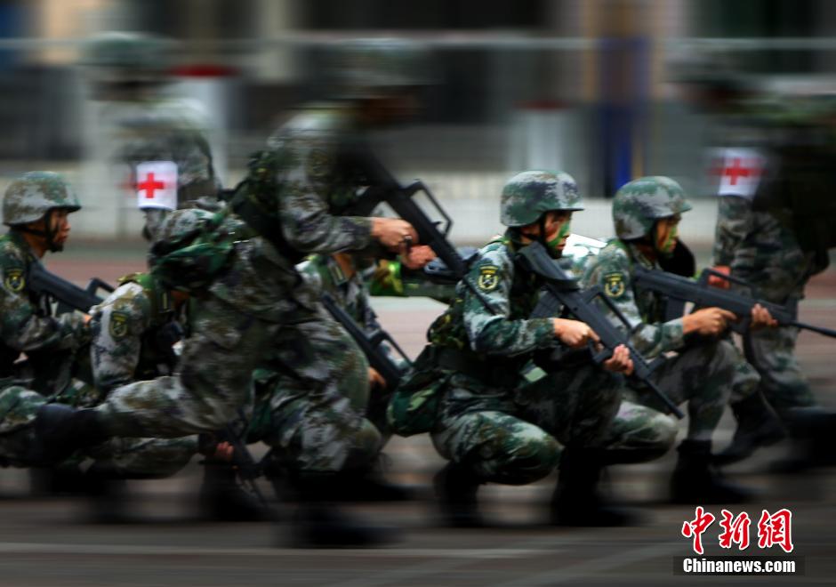 10月12日,石家庄中国人民解放军白求恩医务士官学校官兵,向出席纪念白求恩逝世75周年中国加拿大国际论坛的代表展示战场救护、擒拿格斗、军乐演奏等专业本领和反应部队精神面貌的训练内容,受到与会人士好评。中新社发 宋吉河 摄