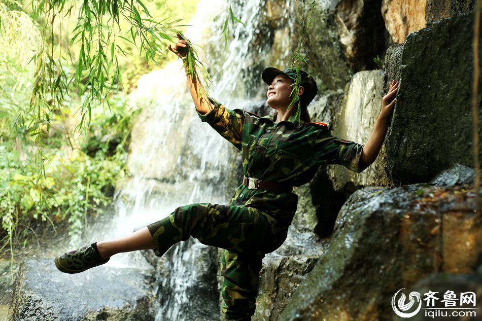 山东艺术学院的一群女生,用她们的舞蹈为我们展现了不一样的军训新生。图为新生秀”腿功“。齐鲁网发 杨旭东 张北辰/摄