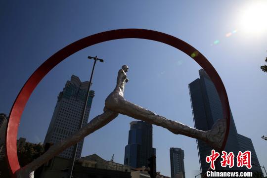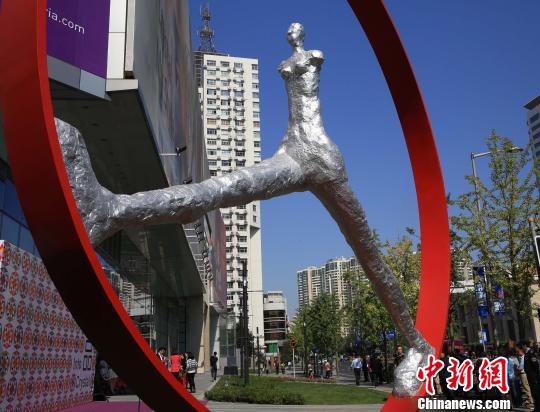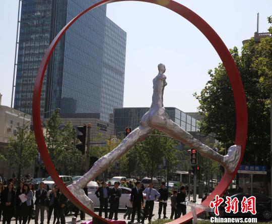 法国雕塑人踏入上海引人关注。 潘索菲 摄