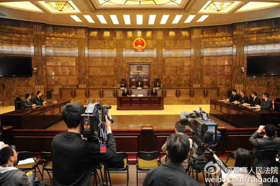 今天上午9时30分,最高人民法院民三庭副庭长王闯担任审判长与审判员王艳芳、代理审判员朱理组成合议庭,在第一法庭公开开庭宣判上诉人北京奇虎科技有限公司与被上诉人腾讯科技(深圳)有限公司、深圳市腾讯计算机系统有限公司滥用市场支配地位纠纷一案。图片来源:最高人民法院微博