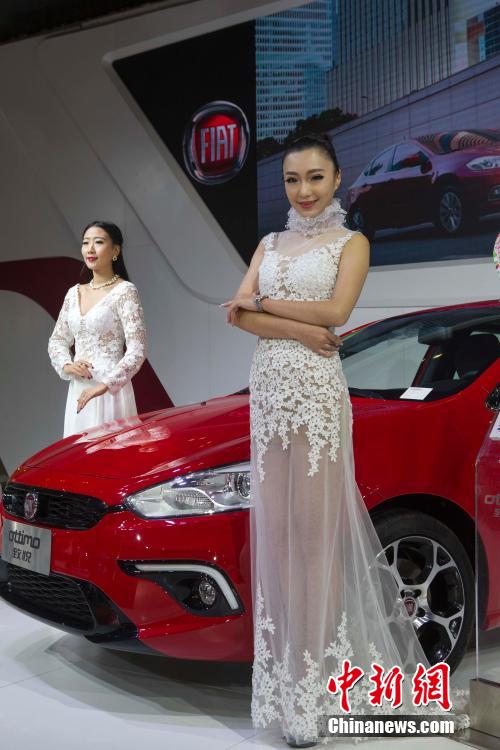 10月16日,2014山西太原第八届TOP国际车展开幕,数十家来自海内外的知名汽车品牌纷纷参展,车展上青春靓丽的车模争奇斗艳形成了一道美丽的风景线,引当地民众驻足争相拍照留念。中新社发 张云 摄