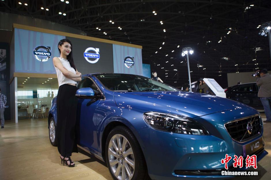 10月16日,2014山西太原第八届TOP国际车展开幕,数十家来自海内外的知名汽车品牌纷纷参展,车展上青春靓丽的车模争奇斗艳形成了一道美丽的风景线,引当地民众驻足争相拍照留念。中新社发 张云 摄