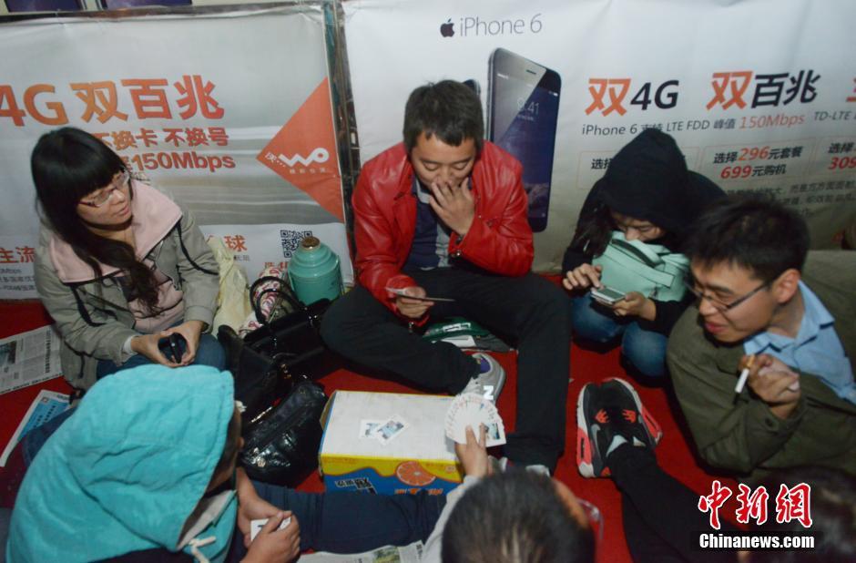 山西太原联通营业厅门外,民众排队等待购买iPhone6。