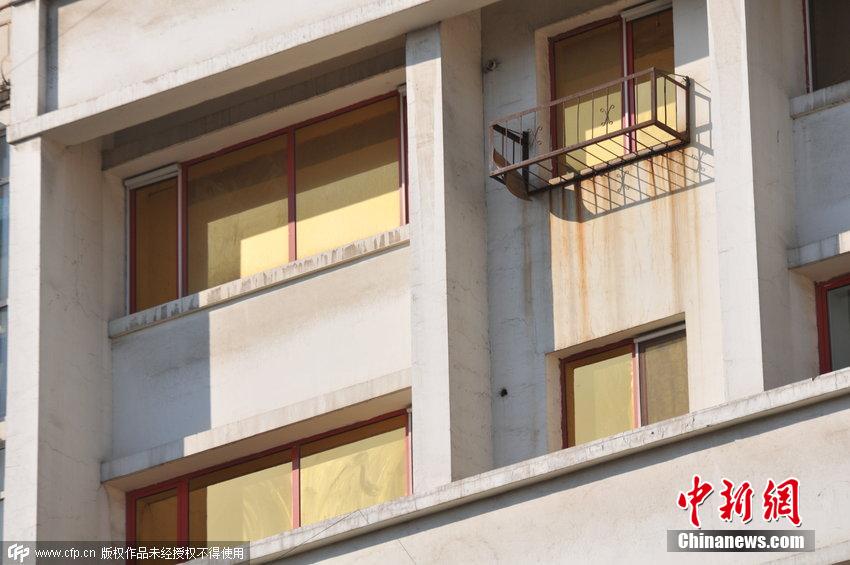 2014年10月16日,沈阳长江街一家楼盘装修的“土豪金”金窗金光闪耀吸引市民抬头观望。图片来源:CFP视觉中国