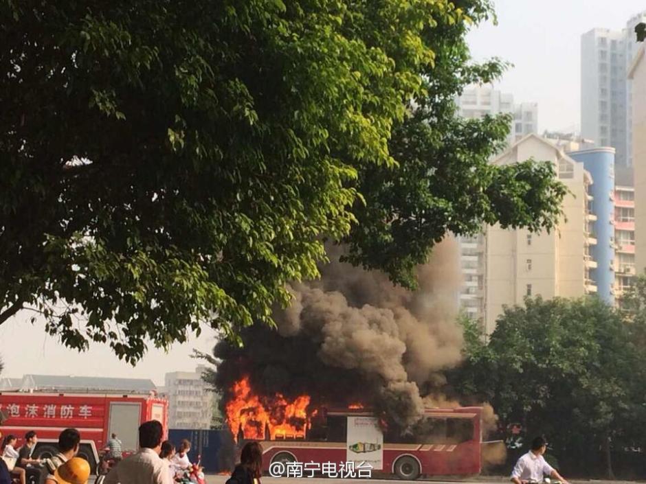 南宁一公交车起火 浓烟滚滚