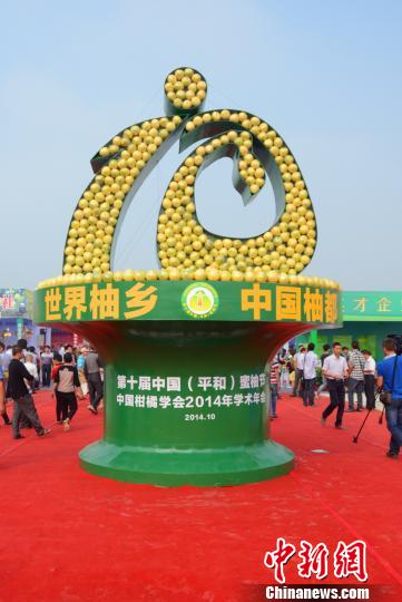 活动现场各类由蜜柚摆搭出来雕塑格外抢眼。 高淑萍 摄