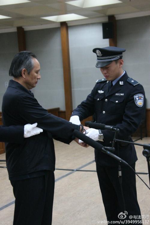 图为告人张曙光被带上手铐。 图片来源:与法同行官方微博