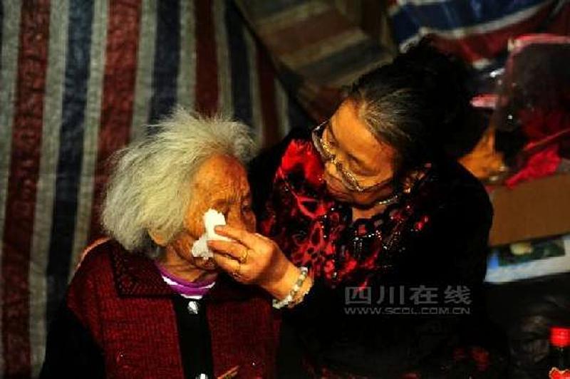 图为九旬老人徐周碧被感动得掉下了幸福的眼泪。 陈君 摄 图片来源:四川在线