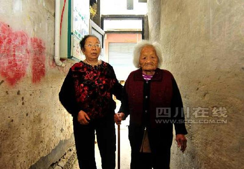 图为天气好的时候,屈代珍就常带着老人出去散散步。 陈君 摄 图片来源:四川在线