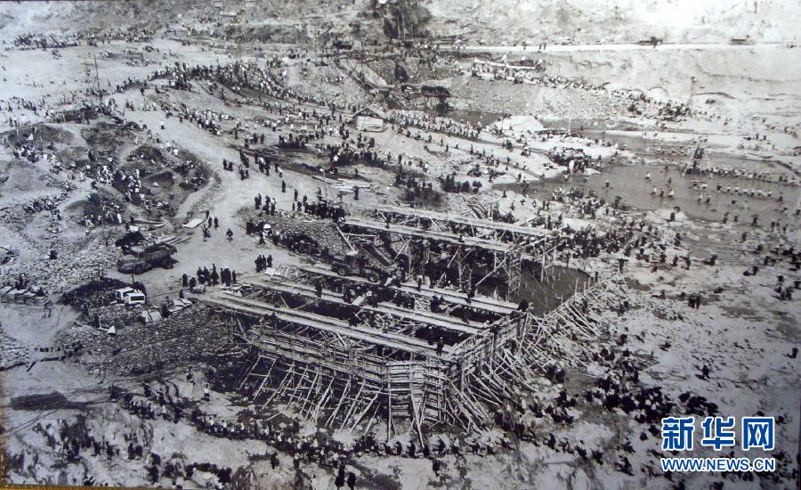 1960年丹江口大坝开始进行大坝建设(资料照片)。 新华社发