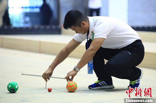 中新网开化10月20日电(记者 赵晔娇)20日,2014年世界地掷球(塑质球女子团体)锦标赛在浙江开化县迎来第一个比赛日。