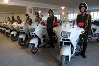 资料图:2004年1月1日,国宾车队摩托车护卫取消,护卫队员列队告别心爱的座骑。