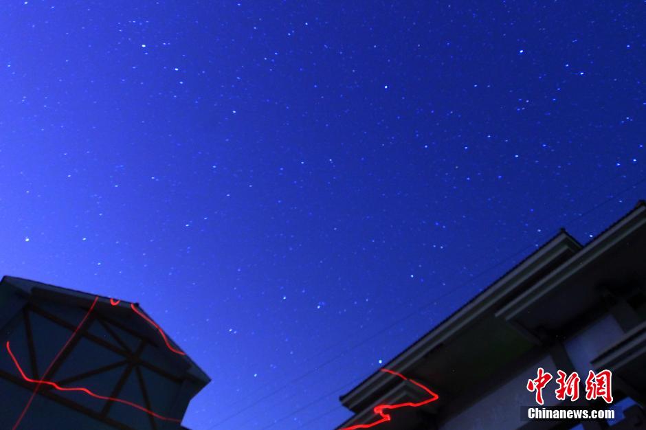 10月21日,在重庆万州区上空拍摄的猎户座流星雨。当晚,猎户座流星雨绽放夜空。根据北京天文馆预测,这次猎户座流星雨的最高峰出现在10月21日22点至22日黎明前,在这段时间内,流量理论极大值为每小时20-25颗,实际观测值每小时至少有十几颗。 中新社发 赵俊超 摄 图片来源:CNSPHOTO