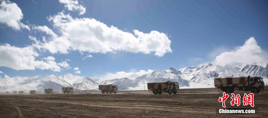 10月15日至20日,在海拔4000米以上的昆仑山腹地举行了“联合行动-2014C”实兵演习。总后青藏兵站部作为驻守在青藏高原的一支重要战略后勤保障力量,配属野战医疗队、重装运输连、汽车应急分队等力量投入演习,全面锻炼和有效提升了部队遂行联合作战后勤保障能力。 图为运输应急分队执行运输任务。 中新社发 邹小庆 摄
