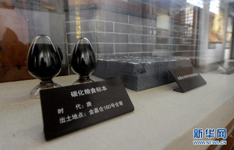 这是洛阳隋唐大运河博物馆里展示的含嘉仓160号仓窖内的碳化粮食标本(9月24日摄)。