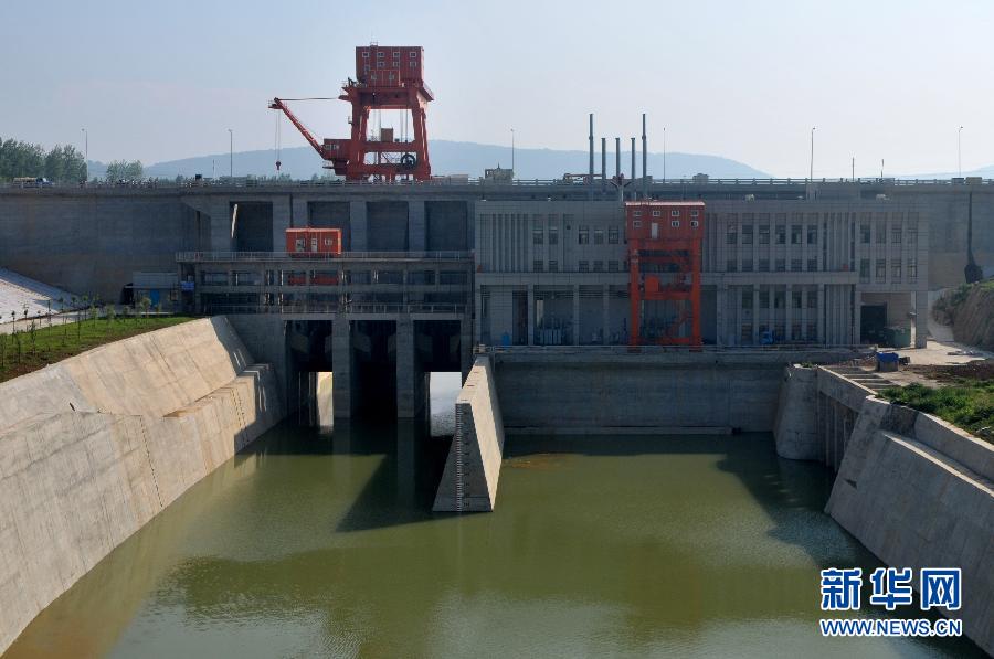 这是河南省淅川县南水北调中线工程陶岔渠首枢纽闸(10月21日摄)。 “龙头开、南水来”。如果说丹江口水库是南水北调中线工程的“大水缸”,那么陶岔渠首枢纽工程毫无疑问就是“水龙头”。南水北调中线工程贯通后,一渠碧波清水就是从陶岔渠首而出,一路高歌北上,缓解北方用水紧张。据了解,陶岔渠首枢纽工程上游引渠段全长约4.4千米,闸坝顶高程176.6米,引水闸分3孔,闸总宽31米,设计流量350立方米/秒,加大流量可达420立方米/秒。建设工程包括上游引渠护坡、重力坝、引水闸及电站等挡水建筑物、闸下消力池及电站尾水渠、两岸岸坡防护工程、下游交通桥及管理设施。整个工程批复总投资8.57亿元,其中电站投资2.93亿元,工程建设从2009年12月开工,目前已经全部完工,具备通水条件。新华社记者 李博摄