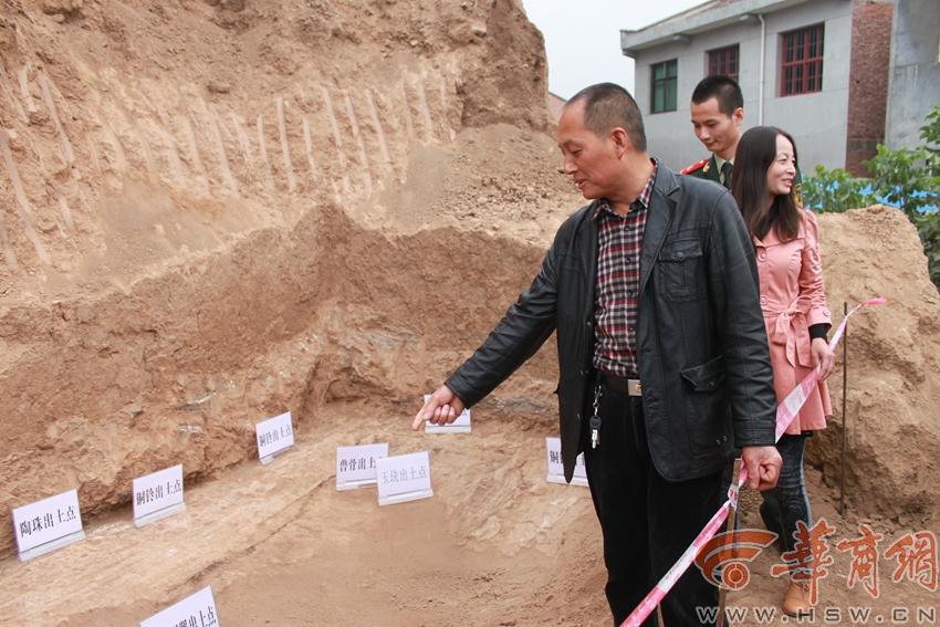 图为 昨日,魏炳祥说,他和妻子当时是在自家后院发现的青铜器。 周金柱 摄 图片来源:华商网