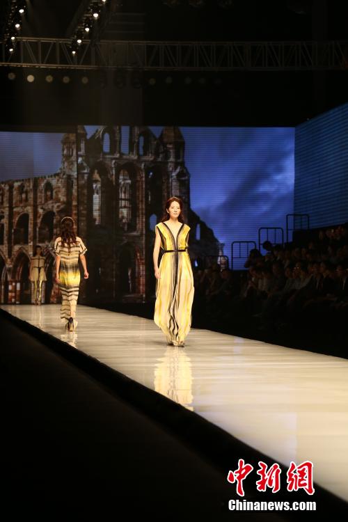 10月22日晚,2014宁波国际时装周开幕,海外顶级品牌Kristi Andress做开幕秀表演。据悉,2014宁波国际时尚周,集聚时尚元素,邀请了九个风尚品牌举行新品发布。图为模特走秀。 中新社发 林波 摄