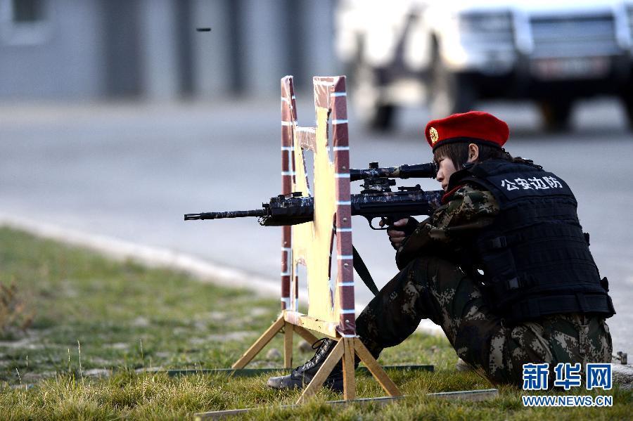 2014年10月22日 新疆举行“警地”联合反恐处突演练 10月22日,一名女狙击手在表演远距离精确狙击。当日,新疆公安边防总队训练基地联合当地警方开展了一场贴近实战的反恐处突演练。演练包括勤务应急反袭击格斗技能、巡逻分队遭受袭击、房屋突击和人员密集区反袭击等内容。据新疆公安边防总队介绍,这次演练结合近年来的一些实际战法,重点突出实战化实用化,一些新战法将陆续在基层推广。赵戈 摄 图片来源:新华网