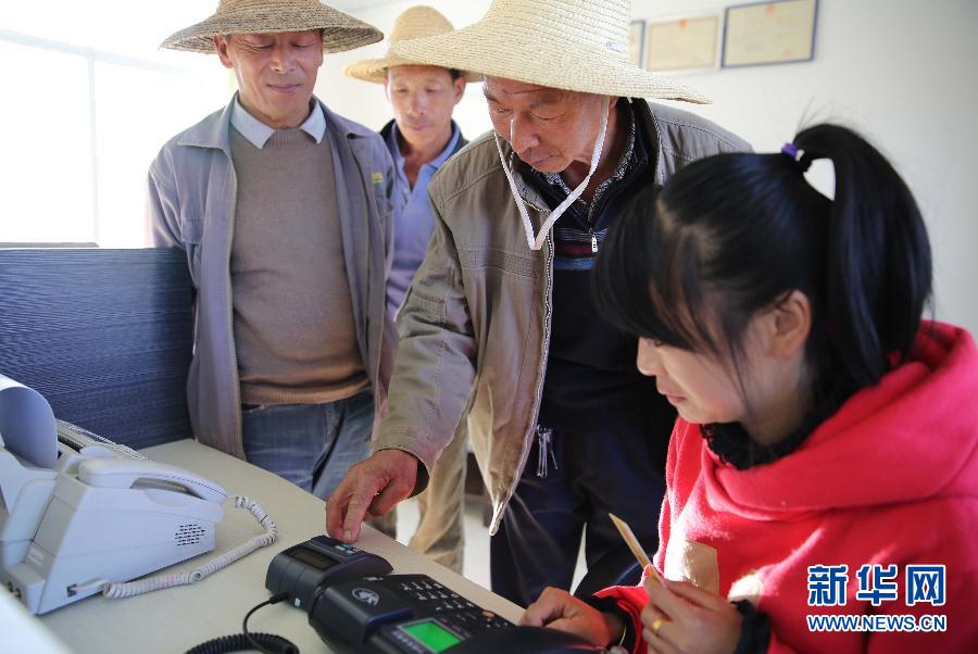 10月23日,云南兰坪县金顶镇大龙村委会农民在一家农业开发公司使用农行自助设备办理还款业务。近年来,农行云南兰坪支行积极推进自助设备建设,设立惠农通自助银行650台,全县农民实现了村内自助贷款、自助还款、自助缴费、自助查询,十分便利。新华社发(梁志强摄)