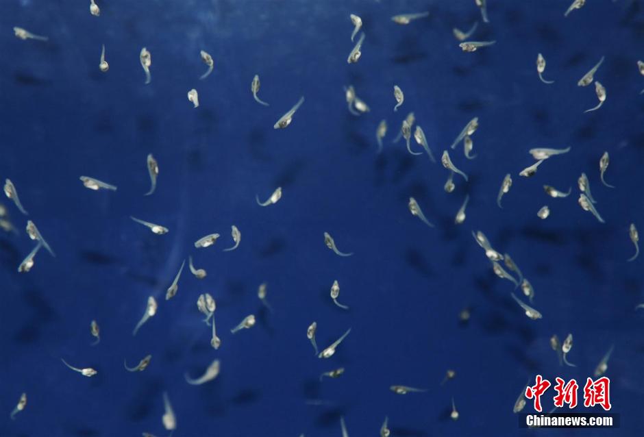 据中国长江三峡集团公司中华鲟研究所10月25日消息消息,2014年度的中华鲟子二代全人工繁殖喜获丰收,此次繁殖共获得受精卵15万粒,最终孵出鱼苗6万尾。这是自2009年以来中国三峡集团第6次成功实施中华鲟子二代全人工繁殖,参与繁殖的雌鱼系第二次在人工调控环境成熟产卵,人工培育的子一代中华鲟雌鱼连续繁殖成功尚属首次。余仁 摄