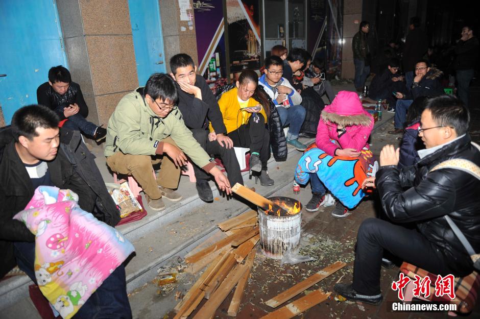 山西一楼盘开盘促销 购房者寒夜烤火取暖排队买房