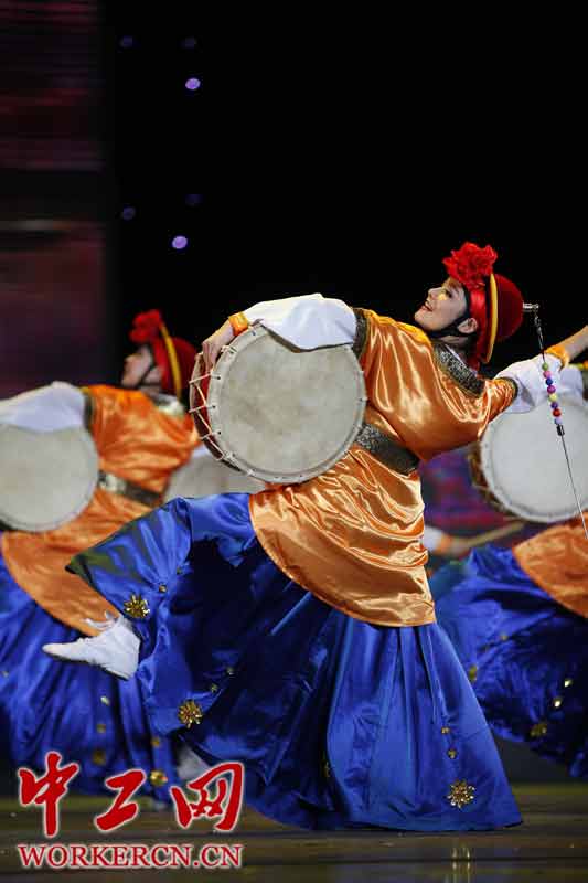 在大赛中,各代表队在舞蹈的编排上别出心裁,把具有地方特色的元素融入到编舞中,使人眼前一亮。图为沈阳铁路局全健排舞队的作品《象帽舞:长白欢歌》。中工网记者韩靖摄