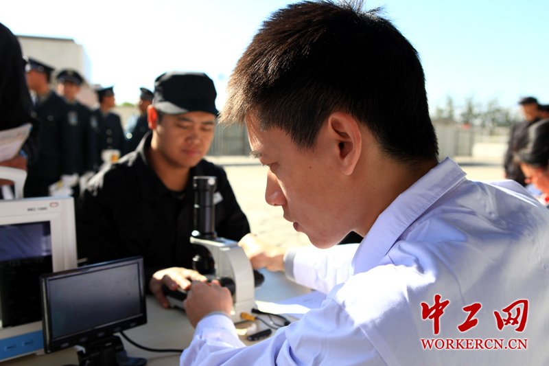 2014年10月26日,来自北京市保安服务总公司西站分公司、北京坚盾保安服务有限公司等150名保安员在“鸟巢”进行免费体检。相关负责人表示,这是北京市保安服务行业工会联合会与北京市医疗器械商会共同发起的“服务 APEC,慰问保安员”主题活动,体检内容包括体重、视力、脉率、血压、餐后血糖、心电图、微循环检测等。相关负责人还介绍,此次活动自10月底持续至年底,预计将为近2000名参与APEC保安员开展免费体检。图为体检现场。 中工网记者 李雪峰 摄