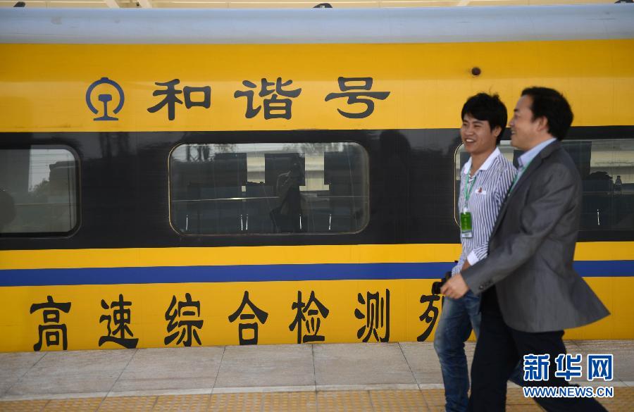 10月27日,在位于浙江衢州的江山站,乘客从进行拉通试验的“和谐号”高速综合检测列车边走过。当日,杭长高铁杭州东至南昌西站为期4天的拉通试验圆满完成。据上海铁路局、沪昆铁路客运专线浙江有限责任公司介绍,这条新线区段自11月起将转入为期约一个月的运行试验,预计年内开通运营。杭长高铁东起浙江杭州,西至湖南长沙,全长931公里,是我国《中长期铁路网规划》中“四纵四横”之一沪昆高铁的重要组成部分,主要承担华东地区与中南、西南地区间中长距离客流运输。新华社记者韩传号摄