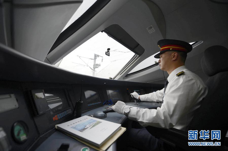 10月27日,一名高铁司机在拉通试验中驾驶“和谐号”高速综合检测列车。当日,杭长高铁杭州东至南昌西站为期4天的拉通试验圆满完成。据上海铁路局、沪昆铁路客运专线浙江有限责任公司介绍,这条新线区段自11月起将转入为期约一个月的运行试验,预计年内开通运营。杭长高铁东起浙江杭州,西至湖南长沙,全长931公里,是我国《中长期铁路网规划》中“四纵四横”之一沪昆高铁的重要组成部分,主要承担华东地区与中南、西南地区间中长距离客流运输。新华社记者韩传号摄