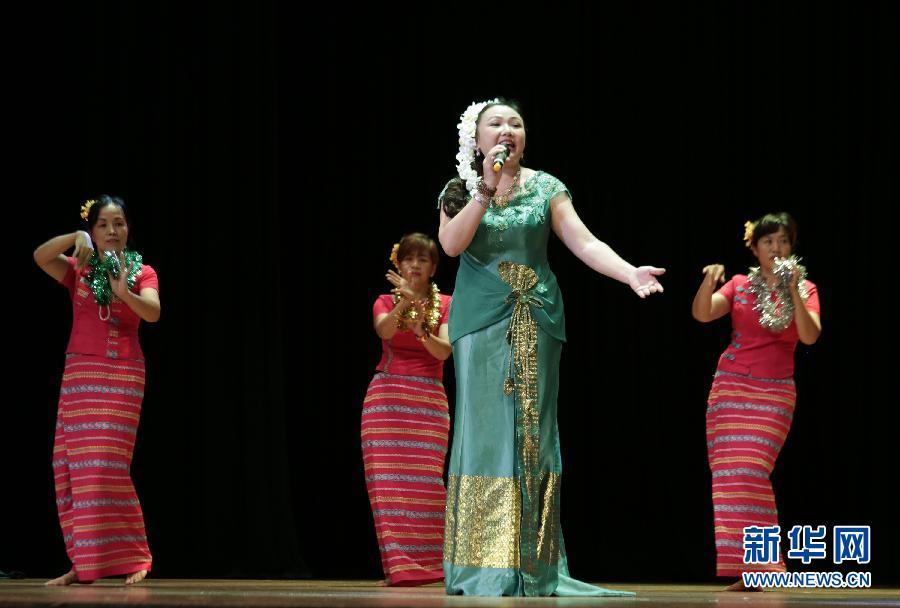 10月29日,在缅甸仰光,云南艺术团演员用缅甸语演唱缅甸泼水节之歌。 “文化中国七彩云南”缅甸行文艺晚会29日在仰光国家剧场举行,受到缅甸各界观众的热烈欢迎。 新华社发(吴昂摄)