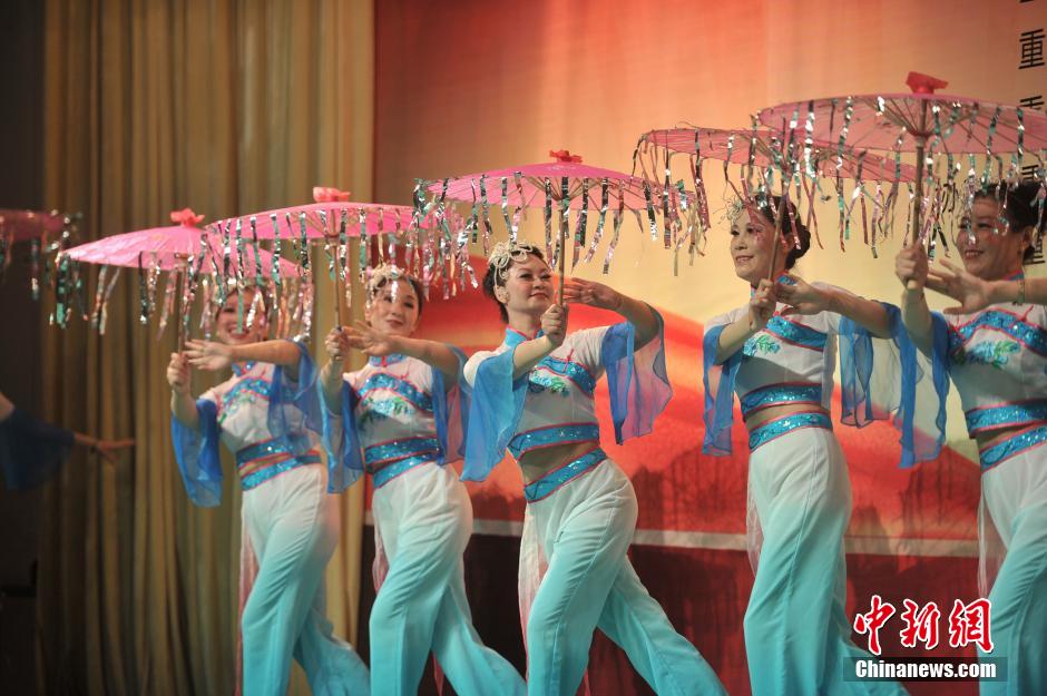 10月31日,重庆市社区老年文艺汇演在合展天池老年护养中心举行,大妈大叔们在舞台上优美的舞姿胜似年轻人。来自主城区的8支代表队精心打造的《中国梦》、《五星红旗》、《再唱山歌给党听》等15个精品节目,深情展现了社区老人们的健康、积极、快乐。 陈超 摄