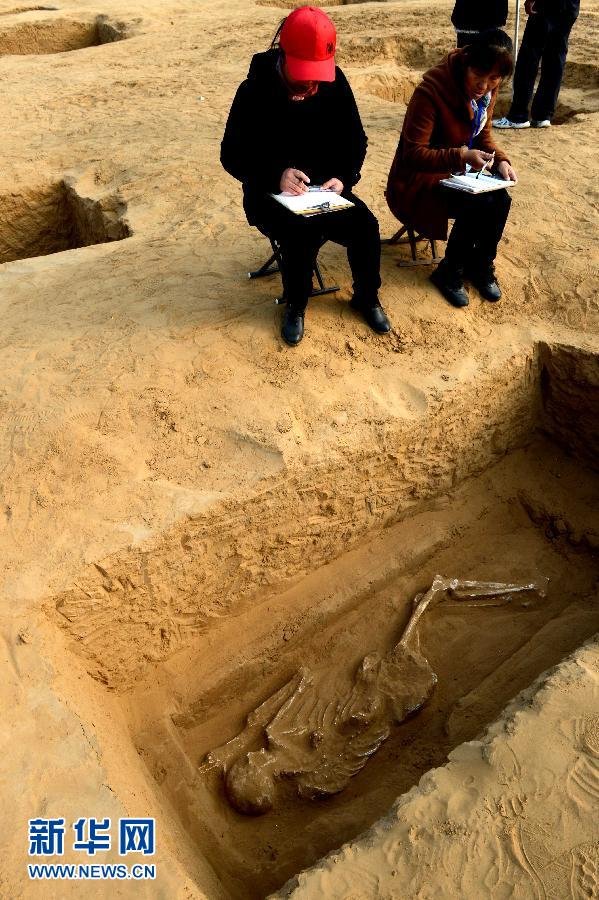 11月5日,考古工作者在现场工作。近日,河南新郑一处建筑工地发现大型战国时期平民墓葬群。经过保护性发掘,已发掘古墓120余座,出土了陶鼎、陶豆、陶匜、陶壶、陶盘以及部分石器等文物。据介绍,整个考古发现对研究当时的社会状况、百姓生活、丧葬习俗等具有重要意义。新华社记者 朱祥 摄