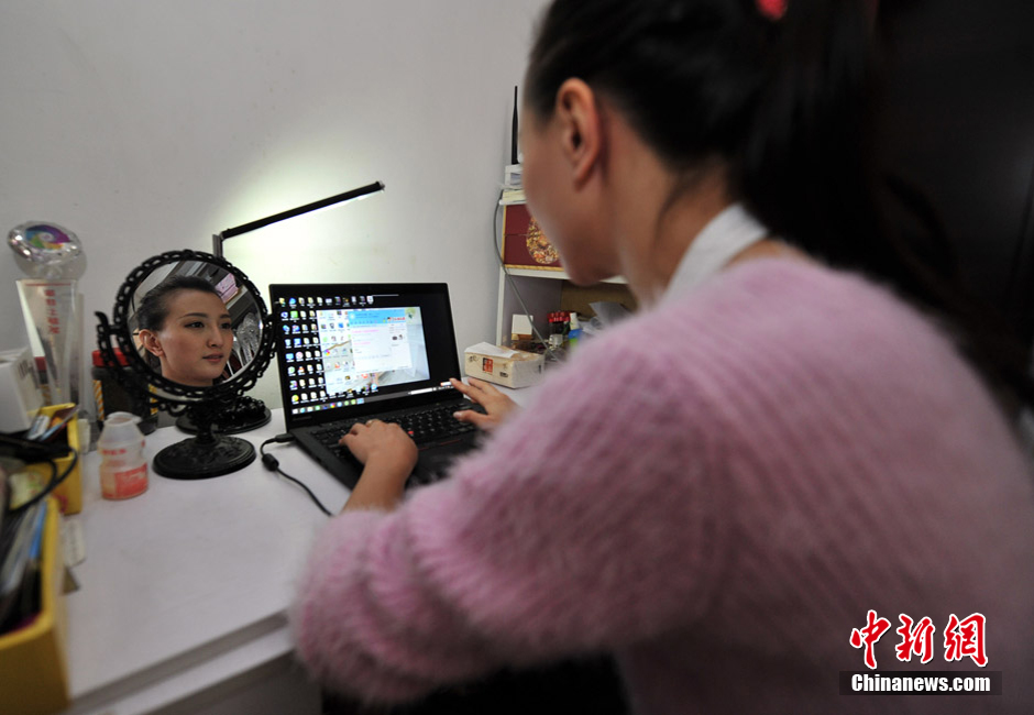 高收入是这个群体的“标签”,平均每个月收入有几万块。每天的拍摄都是按件计价的,一件从几十到几百,个别模特还会更高些。图为何宁宁上网与客户联系拍摄。中新社记者 金硕 摄