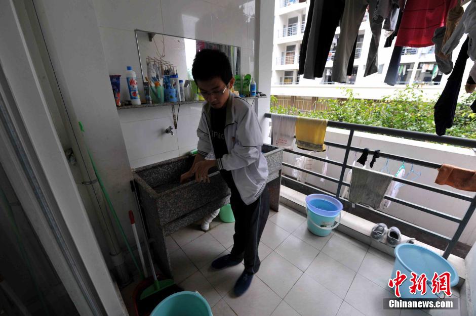 11月11日,一些简单的日常生活,赖志强已经能够自己照顾自己。 张斌 摄