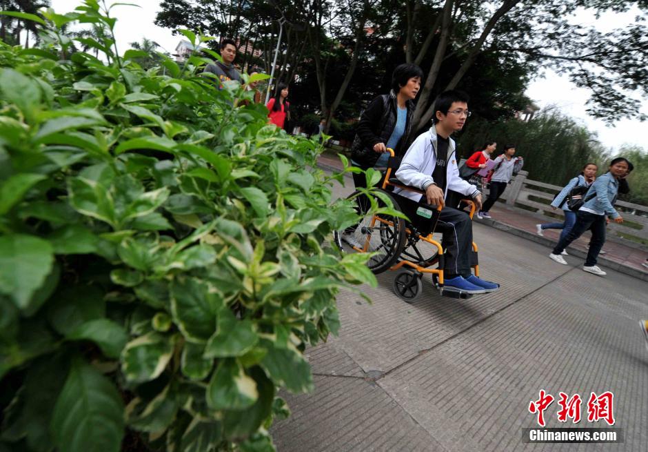 11月11日,赖志强的妈妈每天都提前送他上去课,从不迟到。 张斌 摄